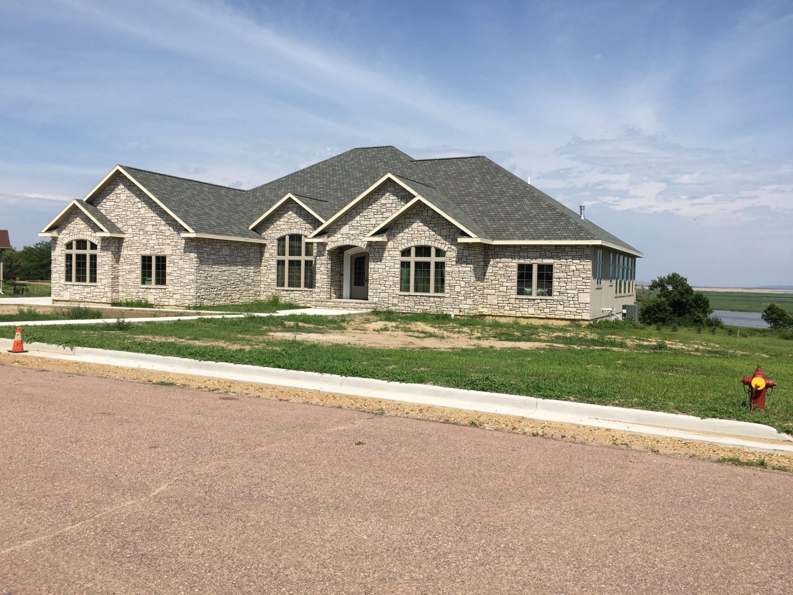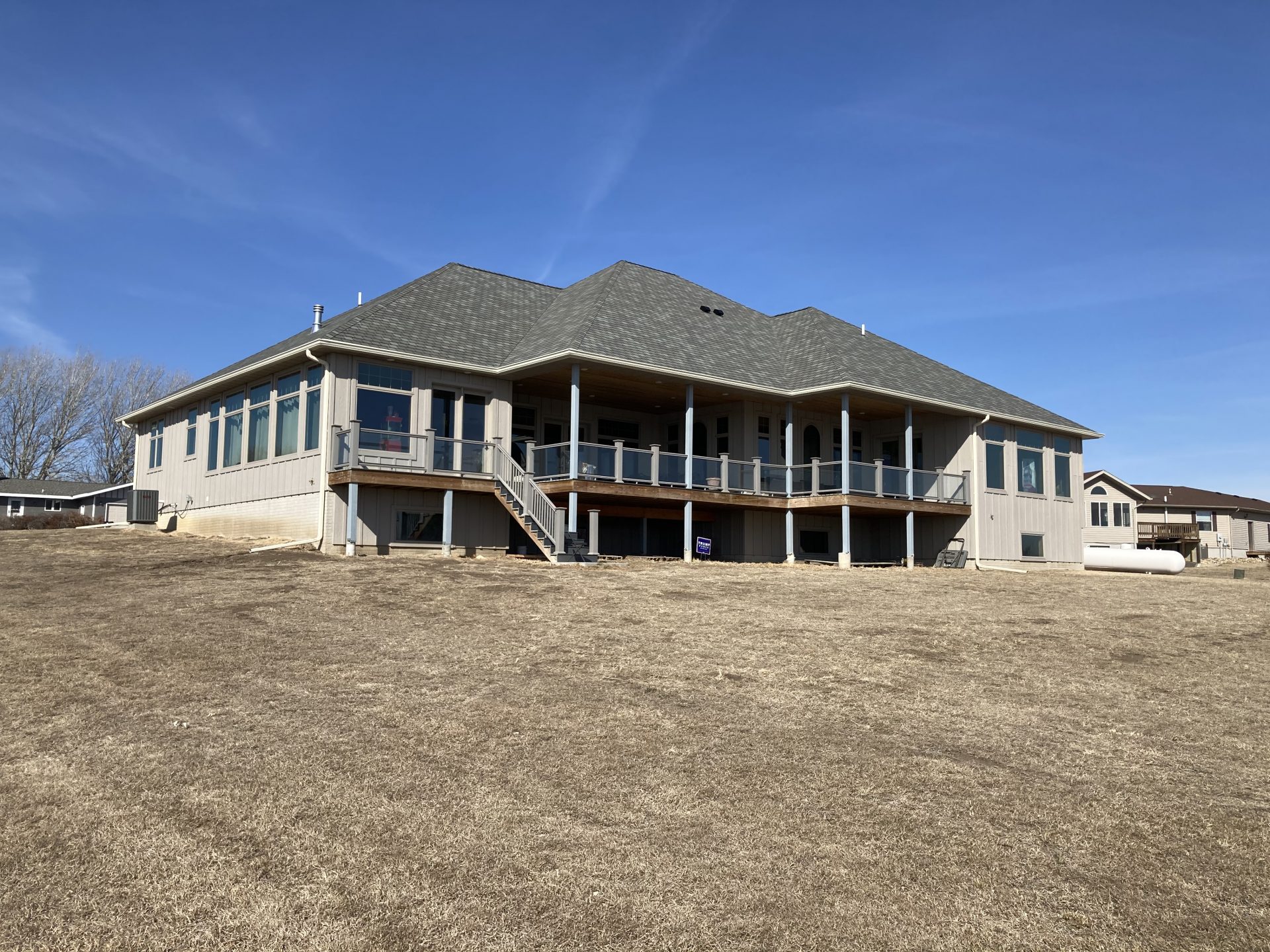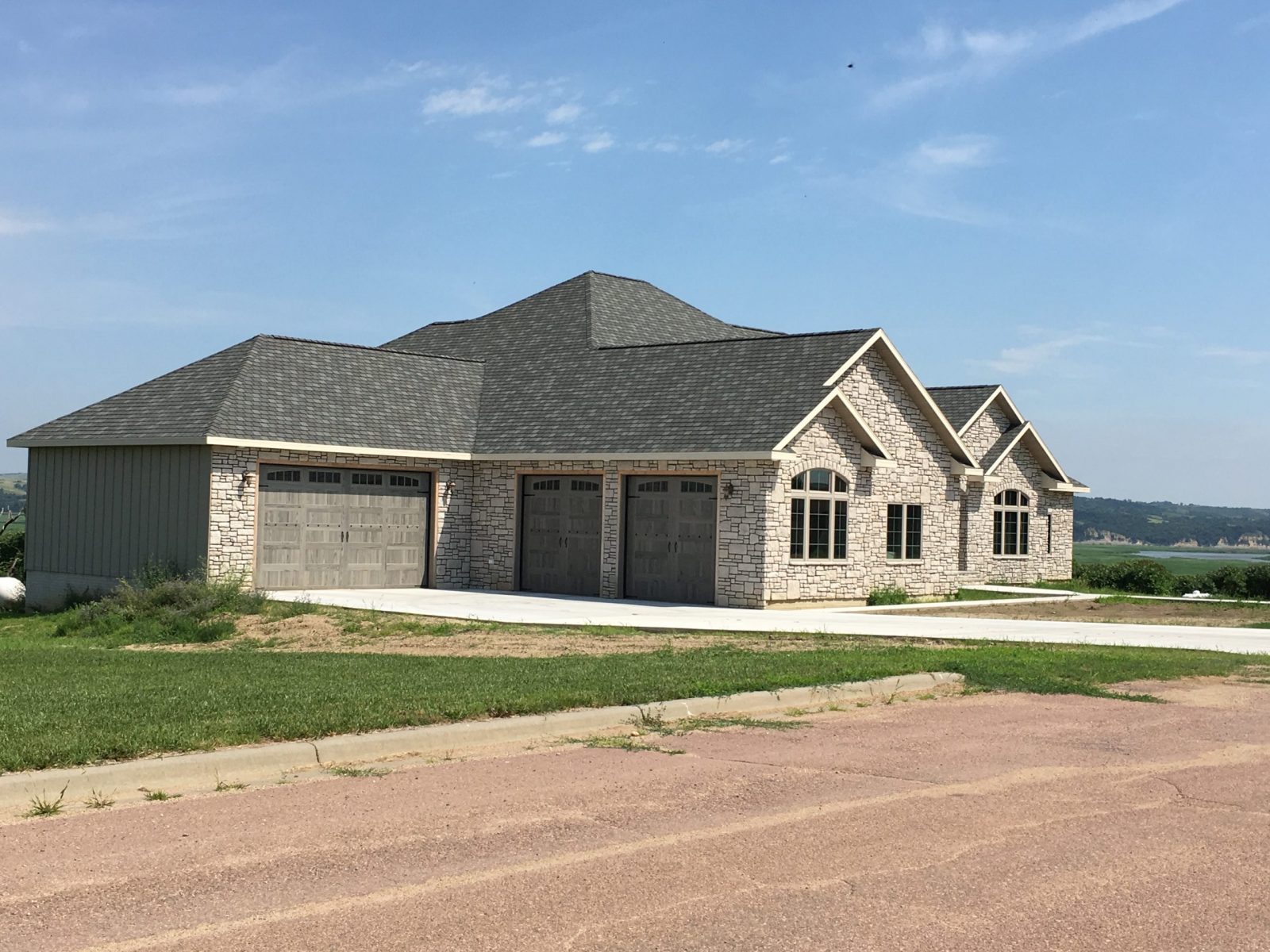 Built on the bluff overlooking the Missouri River, this home boasts approximately 4000 sq ft on the main level and we are proud to have had a part in the construction of this beautiful home. We assembled the very complex roof system along with installing windows, doors, roofing & soffits.